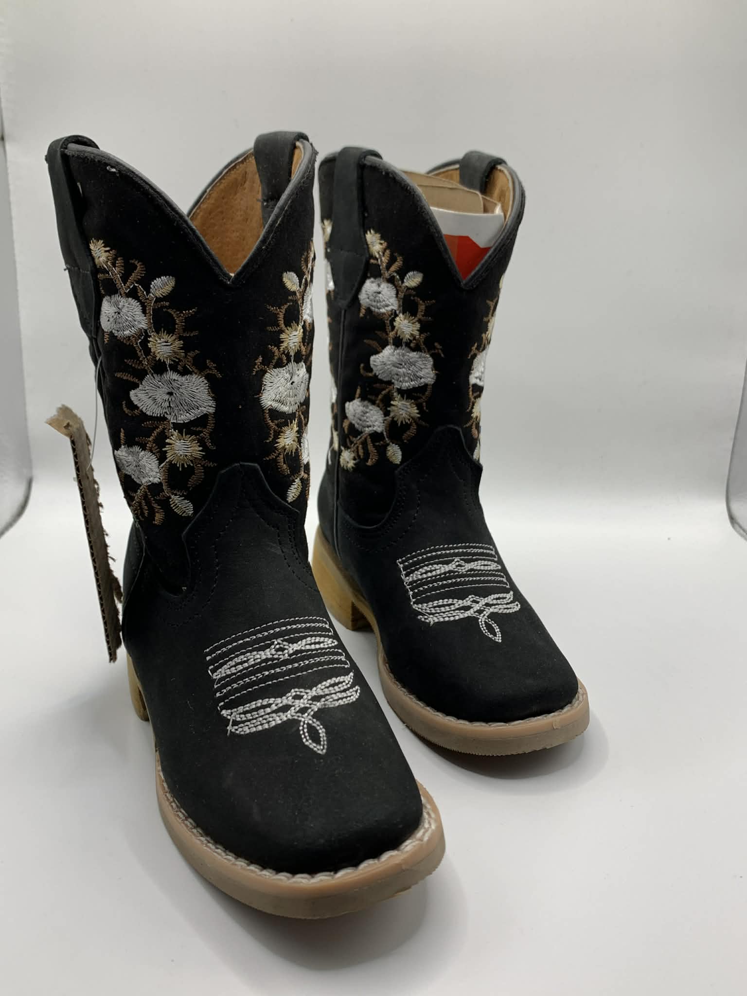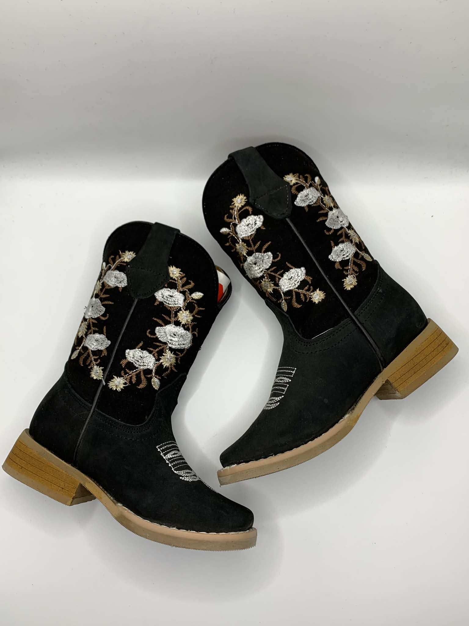 Kids Black Boots With White Flowers