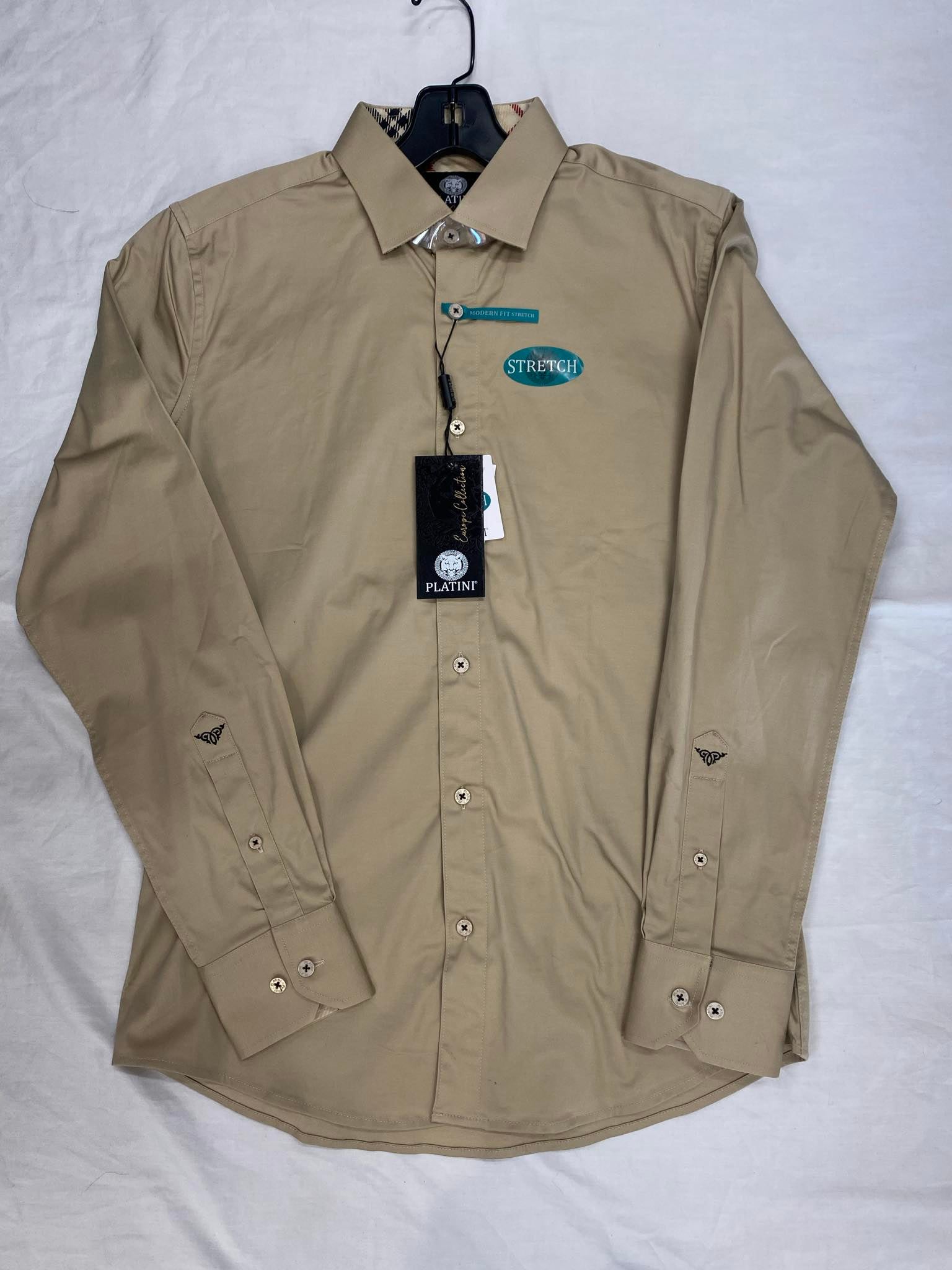 Platini Beige with Striped Collar Men Dress Shirt